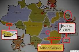 indígenas e o mapa do Brasil mostraria todos os Estados e a localização de